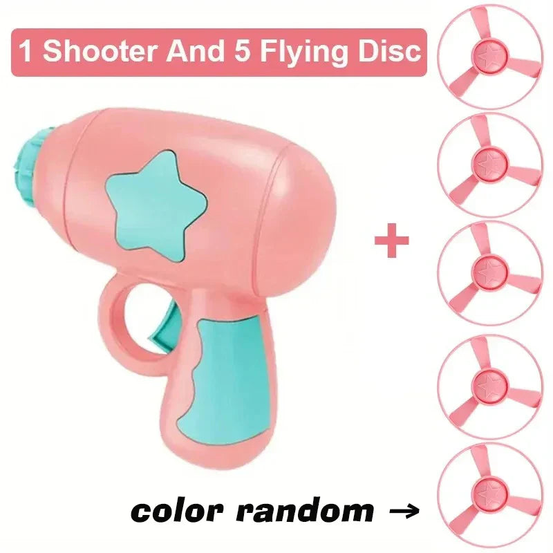 🎁 Complete Set – Includes 1 launcher + 5 colorful flying discs (random colors).