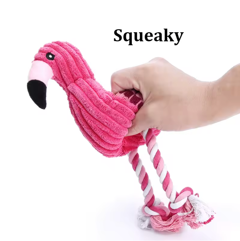 Treat your furry friend to the ultimate playtime experience with the Indestructible Flamingo Toy! Designed for tough chewers, this toy combines a soft plush flamingo with a durable rope, making it perfect for interactive play, chewing, and tugging. Whether your dog loves squeaky toys, rope toys, or both, this toy is sure to keep them entertained while helping maintain their dental health.