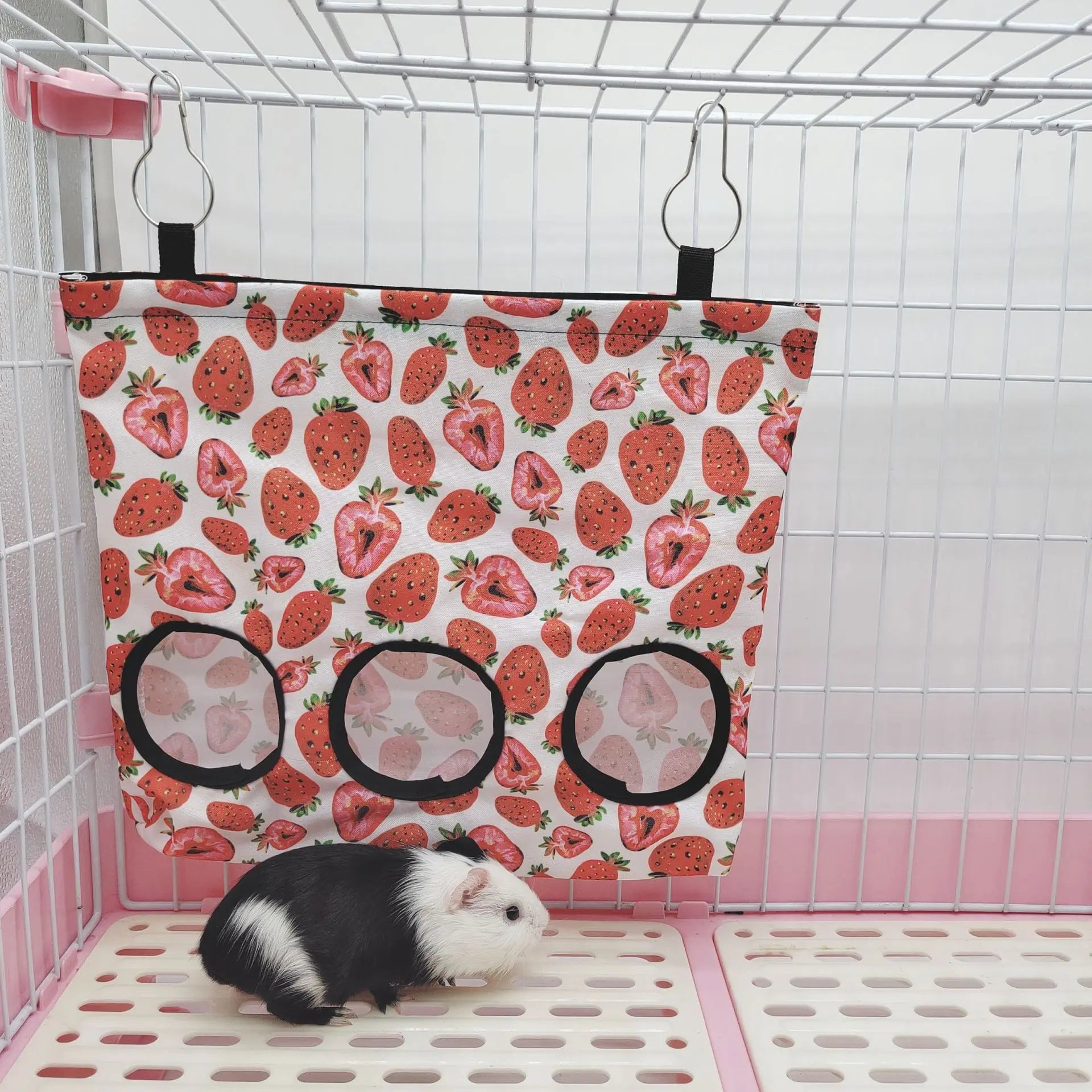 This hanging hay bag is the perfect addition to your pet’s cage, offering a convenient way to feed your small animals like rabbits, guinea pigs, and hamsters. With its efficient design, it helps reduce hay waste while making mealtime tidier and more fun!