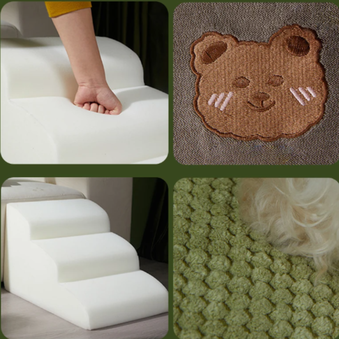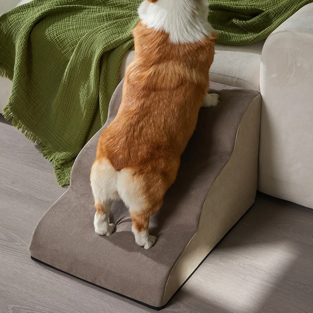 This pet stair allows your pet or cat to reach higher places and effortlessly climb onto high beds or sofas without your assistance, reducing the risk of jumping and better protecting their joints. It is perfect for small dogs or short-legged breeds like Dachshunds, Corgis, older dogs with mobility issues, as well as cats. Provide your pet with an easier and safer climbing environment.