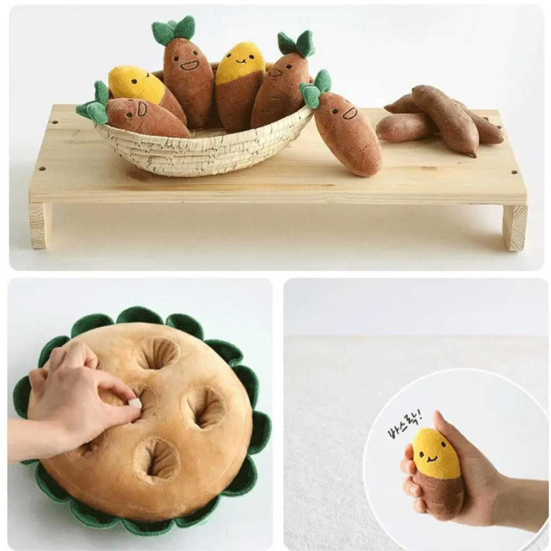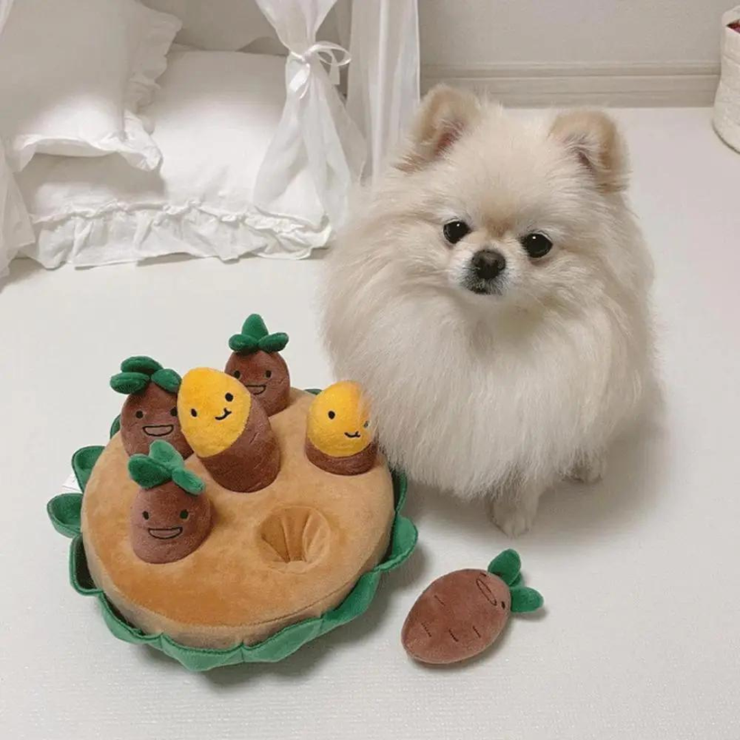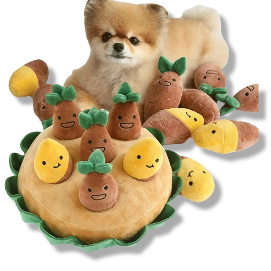 Dogs love treats! Simply hide them under the potatoes and watch your dog sniff them out and harvest them.