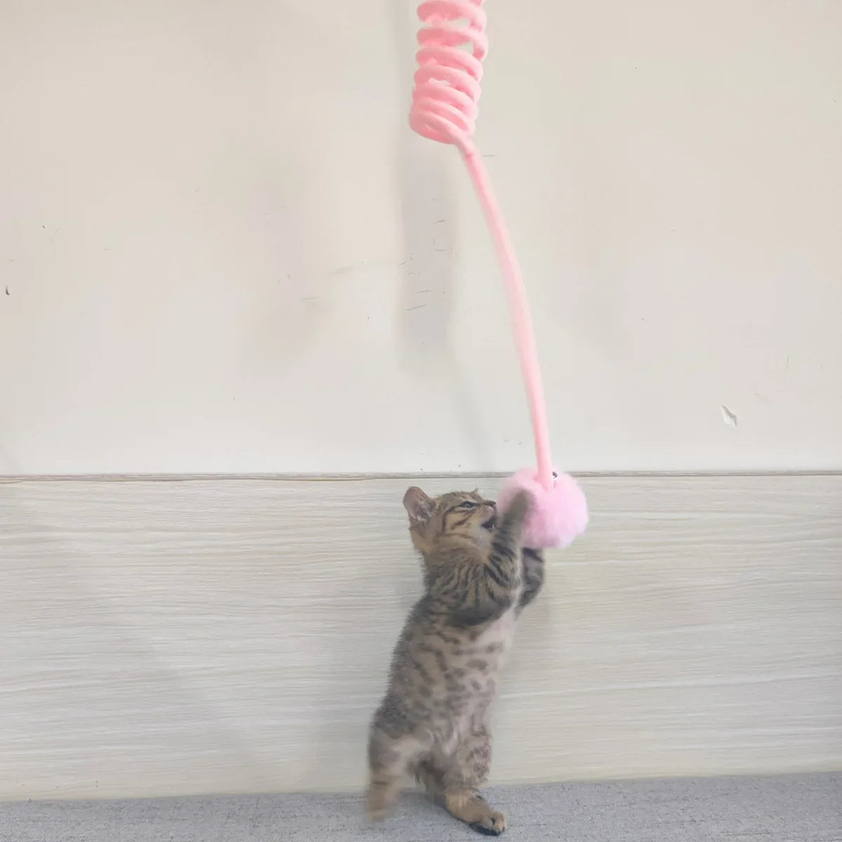 This fun toy features a built-in bell, traceless sticky hook, and a durable spring to ensure endless playtime.