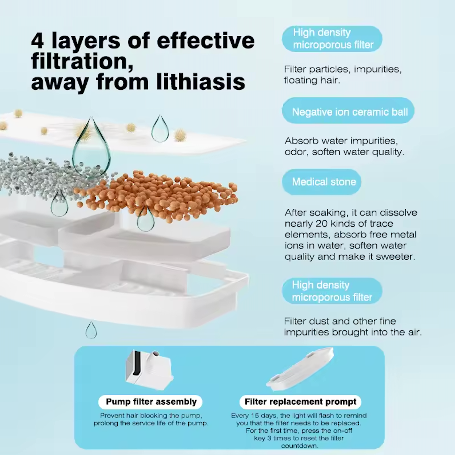 🧴 Auto-Filter & Sterilize: Built-in auto filter ensures the water is always clean and free of impurities. The sterilizing function helps keep your pet’s water bowl safe and hygienic.