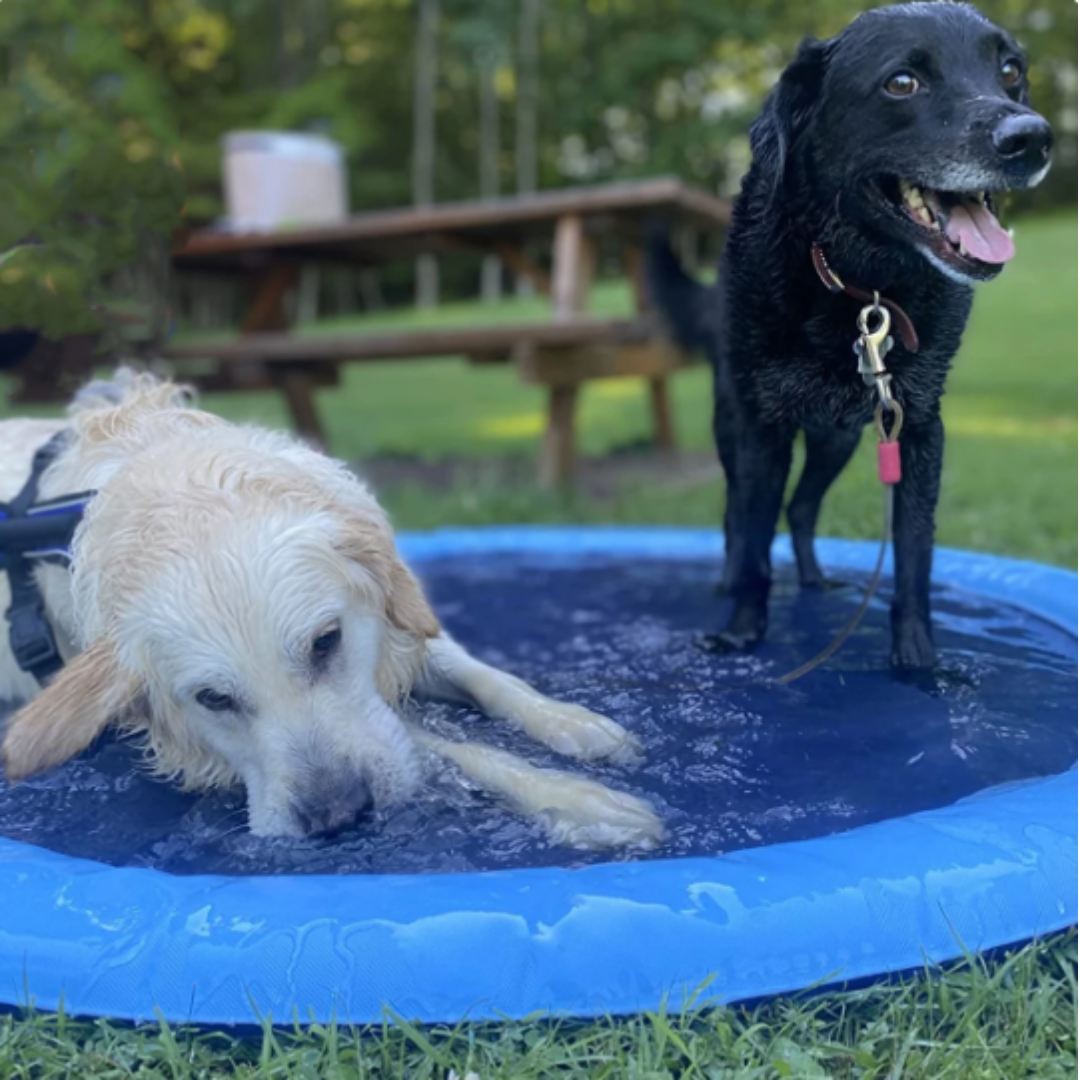 Dogs love getting wet, and it's a delightful sight to watch them jump and splash around in the wading pool. Some dogs even try to catch the falling water with their mouths and shake their heads to cool off—almost like we do when we dance in the rain.